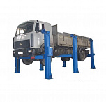 г/п. 10 тонн. Четырехстоечный. Электромеханический. Для ремонта грузовых автомобилей отечественного и импортного производства и автобусов на любой ровной площадке. Привод червячный редуктор, с концевыми выключателями нажимного действия, ограничивающими ход каретки. По отдельному заказу комплектуется установочными рамами. Поставляется в 2 вариантах Стандарт (в помещение) и ТЗ (Для эксплуатации на улице).