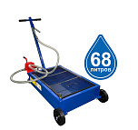 Мобильная ванна для слива масла и антифриза. Ручка складывается. Емкость 65 литров с сеткой для улавливания мелких предметов. Чаша (воронка) для сбора масла не позволяет разбрызгивать масло и антифриз при сливе. Колёса 2 прямых + 2 поворотных. Для любых легковых и грузовых автомобилей. Масса 25 кг. Размеры тележки: (ДxШxВ) 700*500*250 мм.