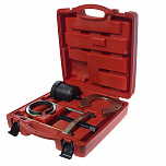 Для снятия/установки запрессованных элементов: шаровых опор, карданного шарнира с крестовиной, анкерных пальцев барабанных тормозов и других аналогичных работ. Размер струбцины: 165 мм. Размер насадок: 69 мм, 56 мм, 45 мм.