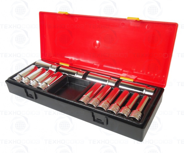 Набор головок торцевых 1/2 6-ти гранных 10-32мм глубоких в кейсе 14 предметов JTC