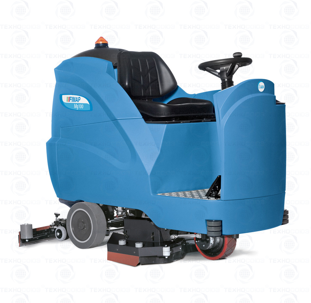 FIMAP Mg 75 B - компактная аккумуляторная поломоечная машина с местом для оператора. Предназначена для профессионального пользования. Эффективна в уборке больших площадей до 11500 м.кв.